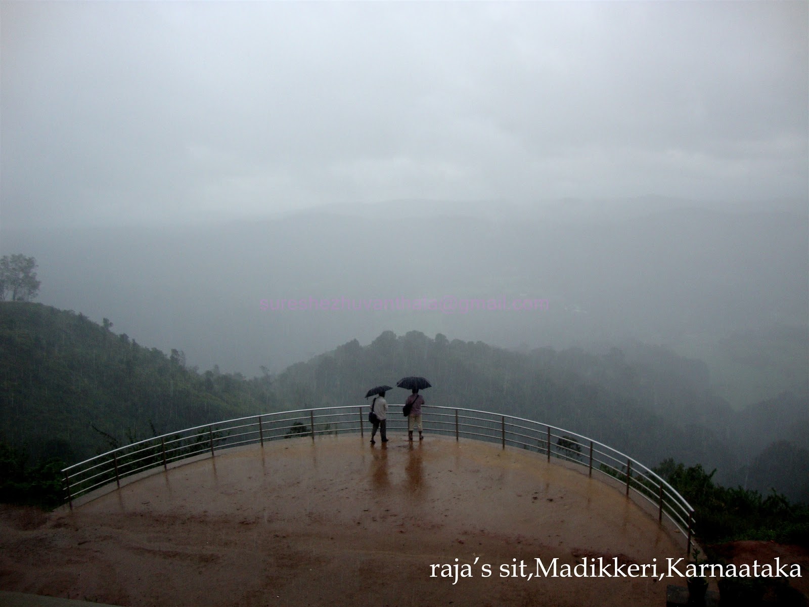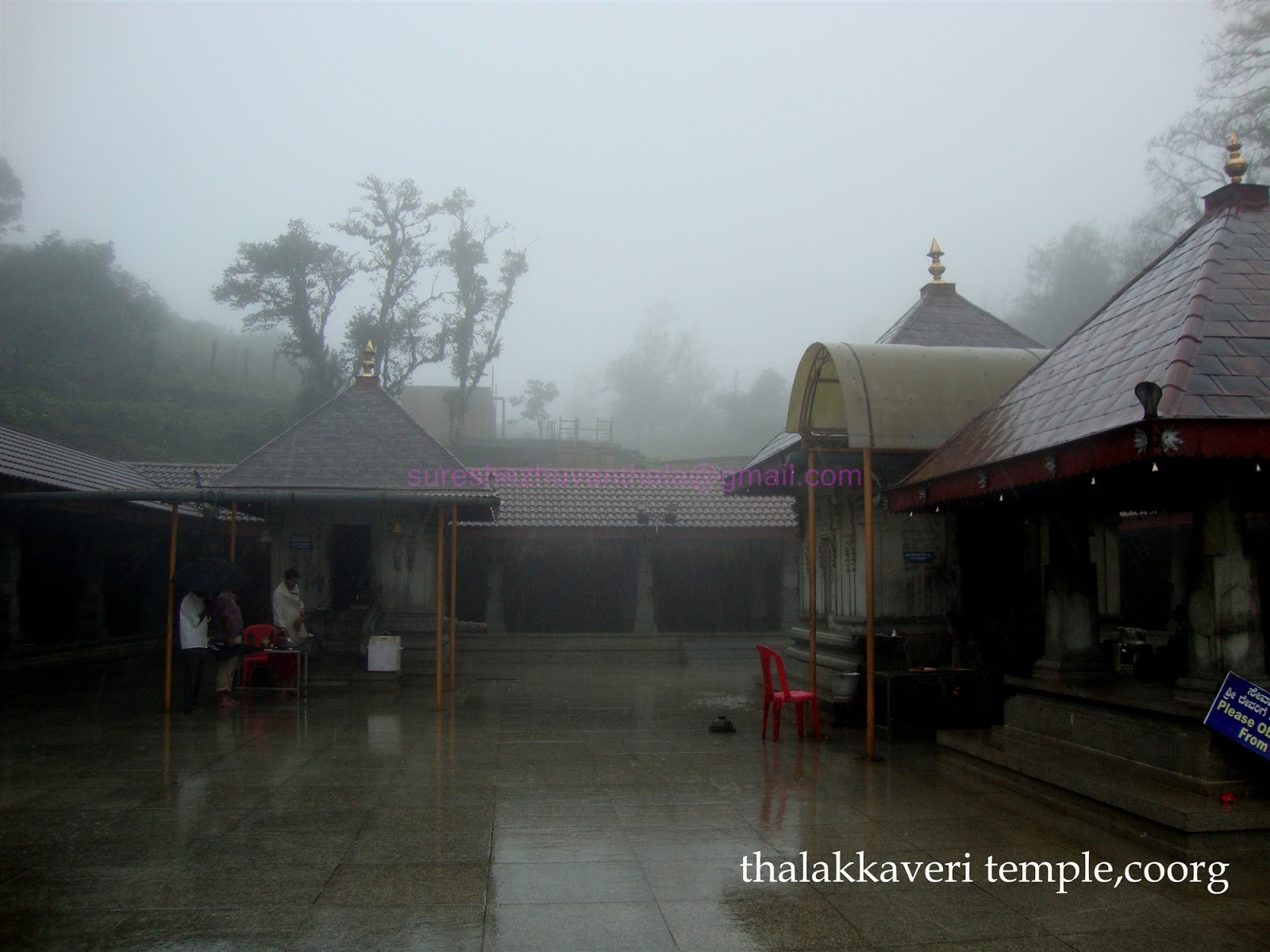 Next we took an Auto to Thalakkaveri (8Km) .Talakaveri is the place that is generally considered to be the source of the river Kaveri. It is located by Brahmagiri hill (not to be confused with the Brahmagiri range further south) 1,276 m. above sea level. A tank or kundike has been erected on a hillside, at the place that is said to be the origin.Mist ,rain and wind totally wet us.Then we get a bus to Virajpet. We never forget that rainy wet night.The kodagu policemen expelled us from the bus station.We stand there untill got a rush bus at 2:00AM.Around 5:00AM we get Thalasseri again.